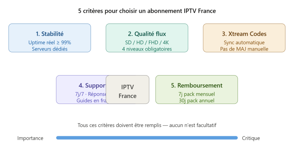 Choisir un abonnement IPTV France en 2026 n’est pas compliqué — à condition de savoir quoi regarder. La stabilité des serveurs et la qualité du support comptent infiniment plus que le nombre de chaînes affiché sur le site.